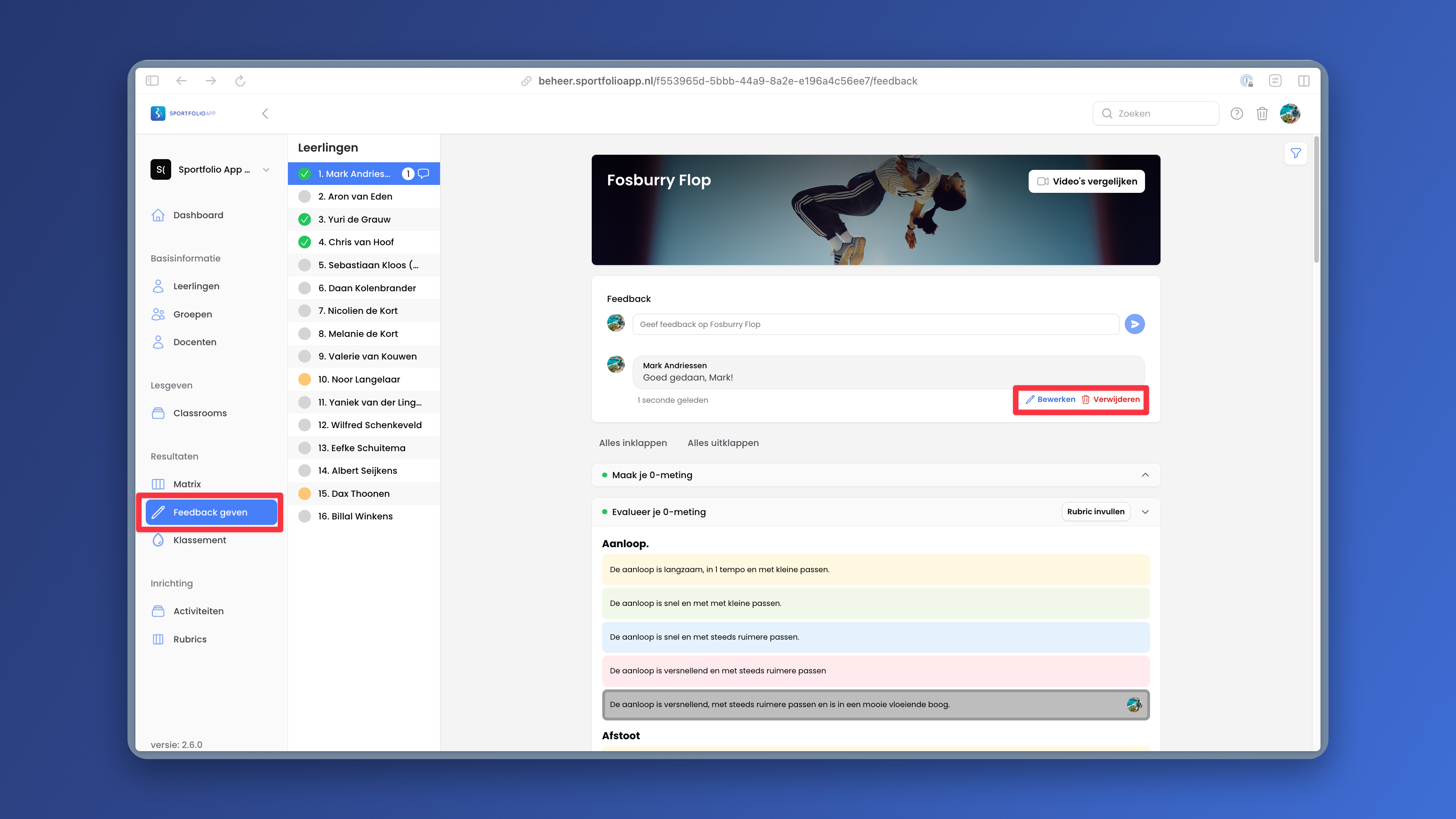 Goed om te weten: Je kunt alleen je eigen gegeven feedback aanpassen of verwijderen. Feedback van collega-docenten kun je wel lezen, maar niet wijzigen. Dat kan alleen die collega zelf doen.